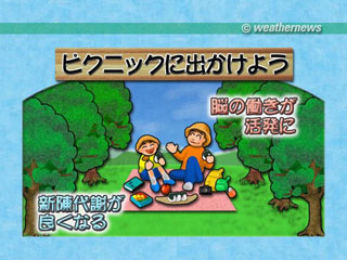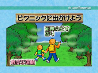 この場合、日光は日焼けするほど浴びる必要はなく木漏れ日程度で十分です。週末は新緑と降り注ぐ日ざしの中に身をおいて心と体をリフレッシュさせてみるというのはいかがでしょうか。ただし、紫外線も強い時期ですから対策は念入りにしてから出かけましょう。 |
